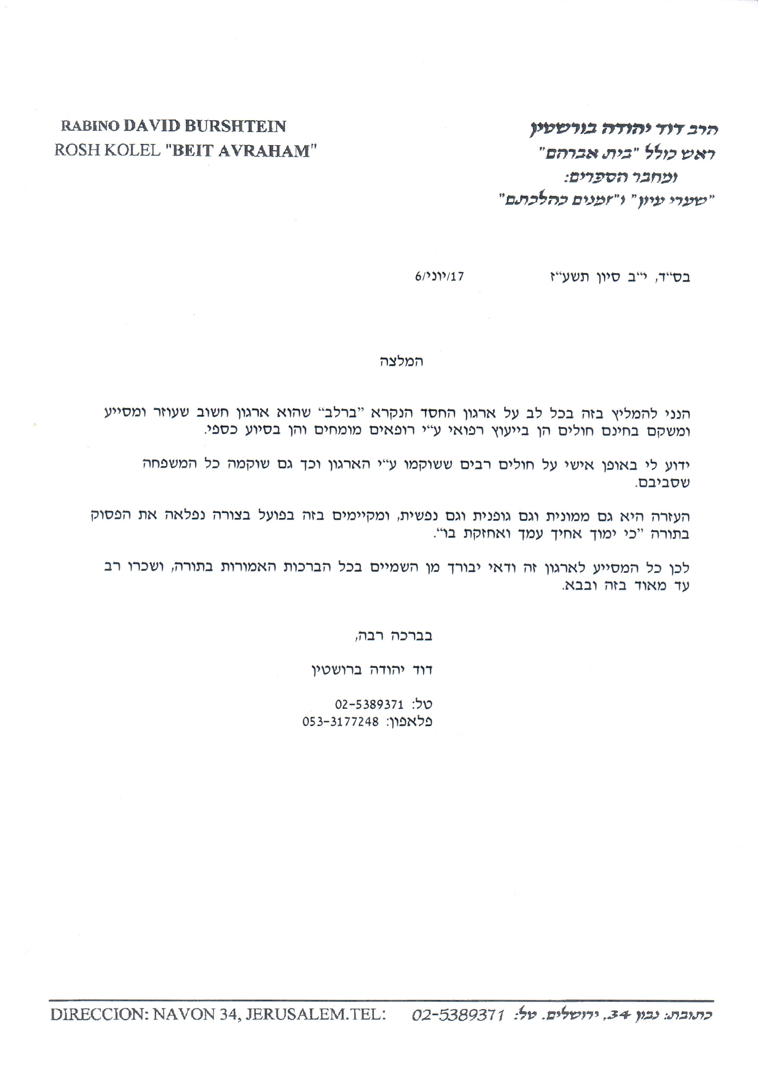 Berelev es una organización sin fines de lucro que tiene como objetivo ayudar a los miembros de la comunidad latina que estén atravesando un problema de SALUD en Israel, y se encuentre con dificultades para enfrentarlo, debido al idioma, ausencia de familiares y/o recursos económicos.